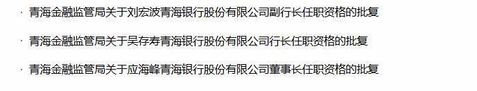 应海峰升任董事长!青海银行三位新高管任职资格获批,核心团队落定